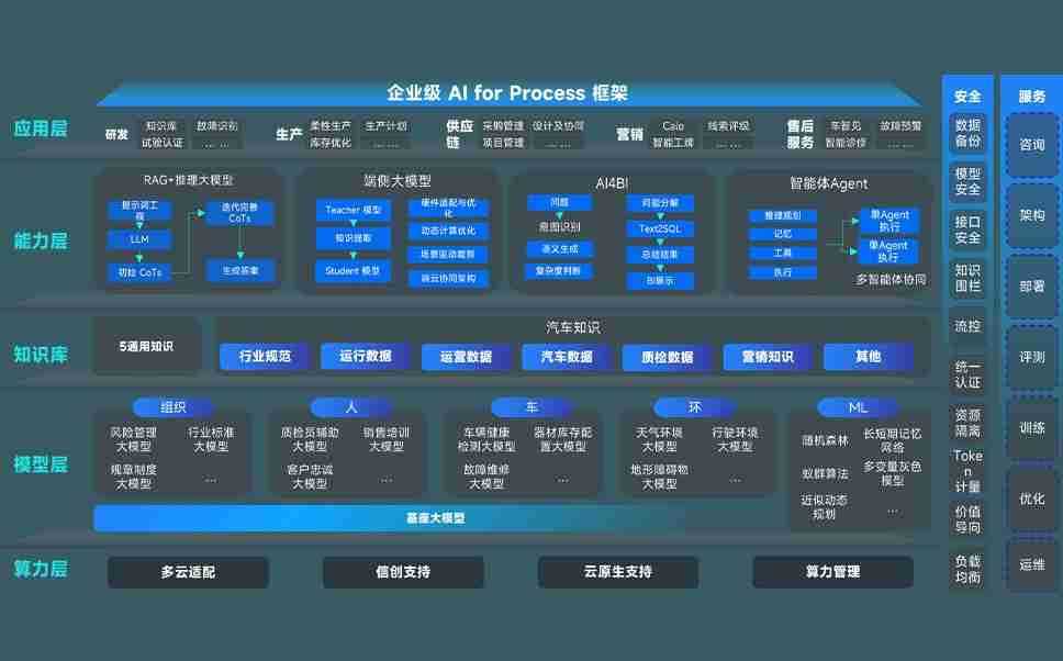 端到端的一站式AI工作空间深度融合了从企业战略规划到日常经营的全流程业务板块,,,定向解决车企内部领域多、、、、部门多、、、链条长、、、场景碎片化等难题,,支持车企快速构建以AI为核心的生产力写作体系,,,实现任务执行与AI能力的无缝集成与交互